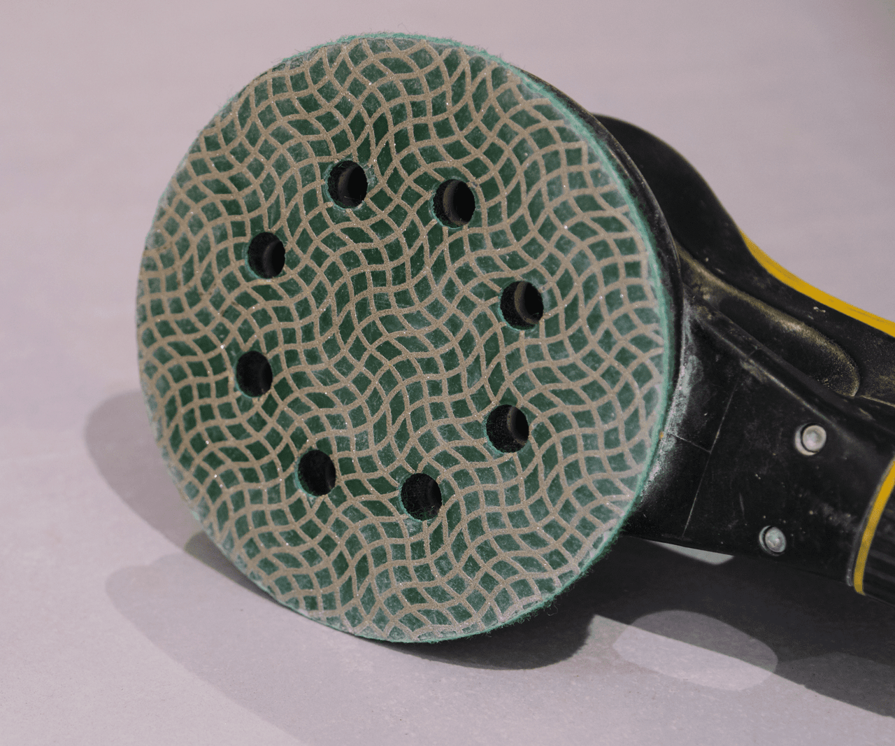 The 60 grit quadroflex flexible diamond disc is second to none to sand coarse microcement.