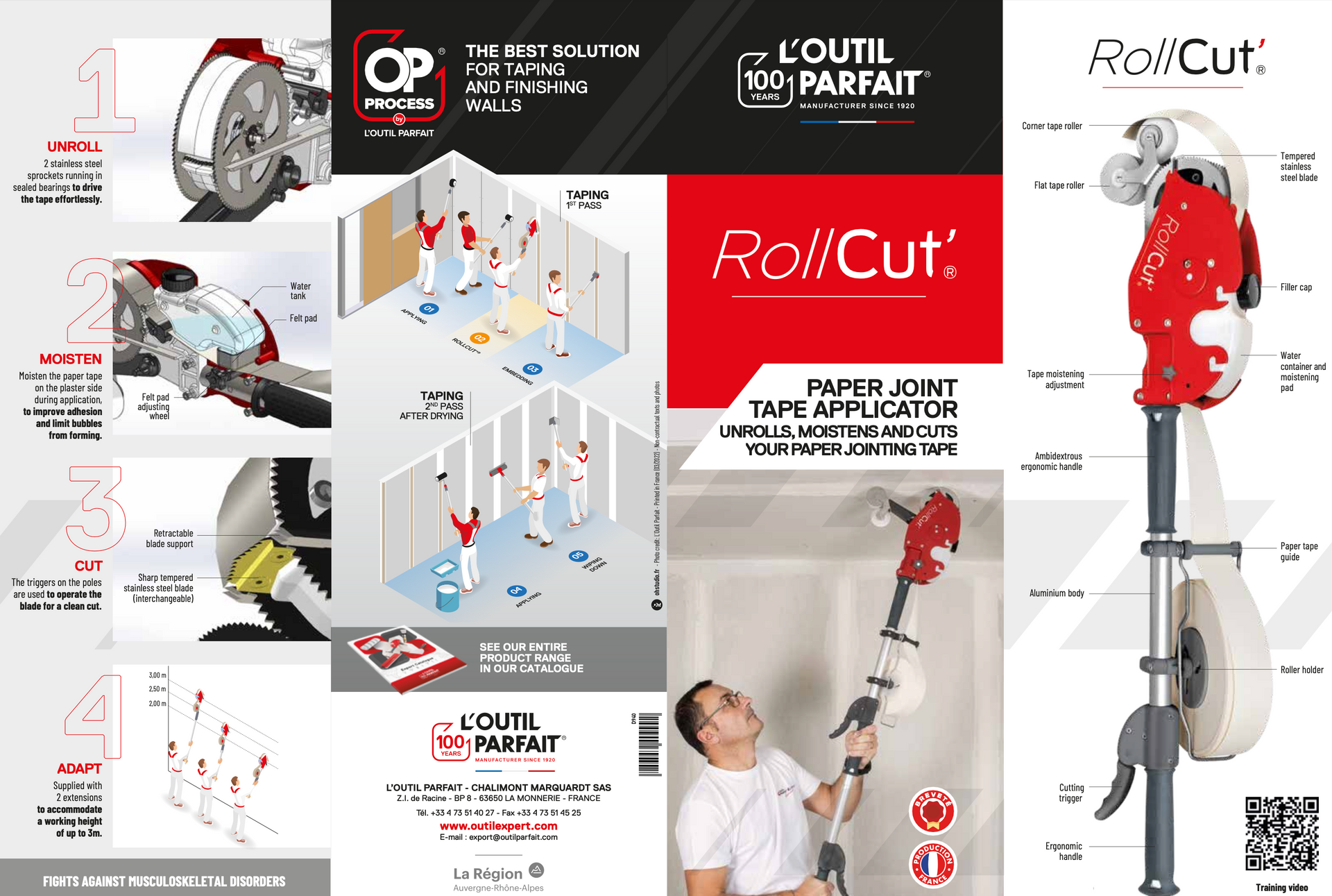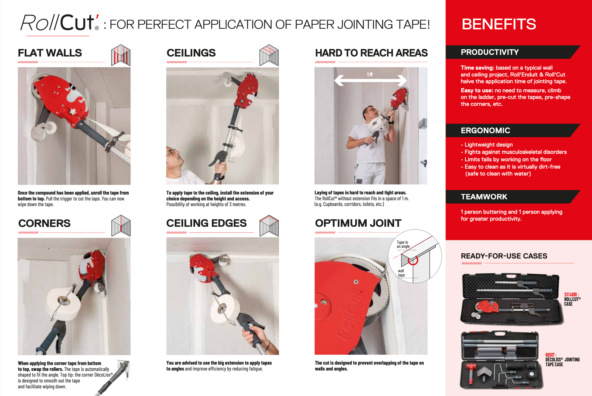 RollCut : Only one tool for rolling out, laying and cutting paper joint tape.